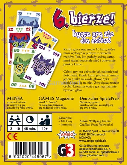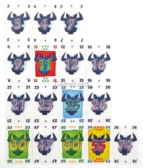 Każdy z graczy otrzymuje 10 kart, które musi wyłożyć w jednym z czterech rzędów. Ten, kto położy szóstą kartę musi wziąć pozostałe pięć i otrzymuje punkty karne.