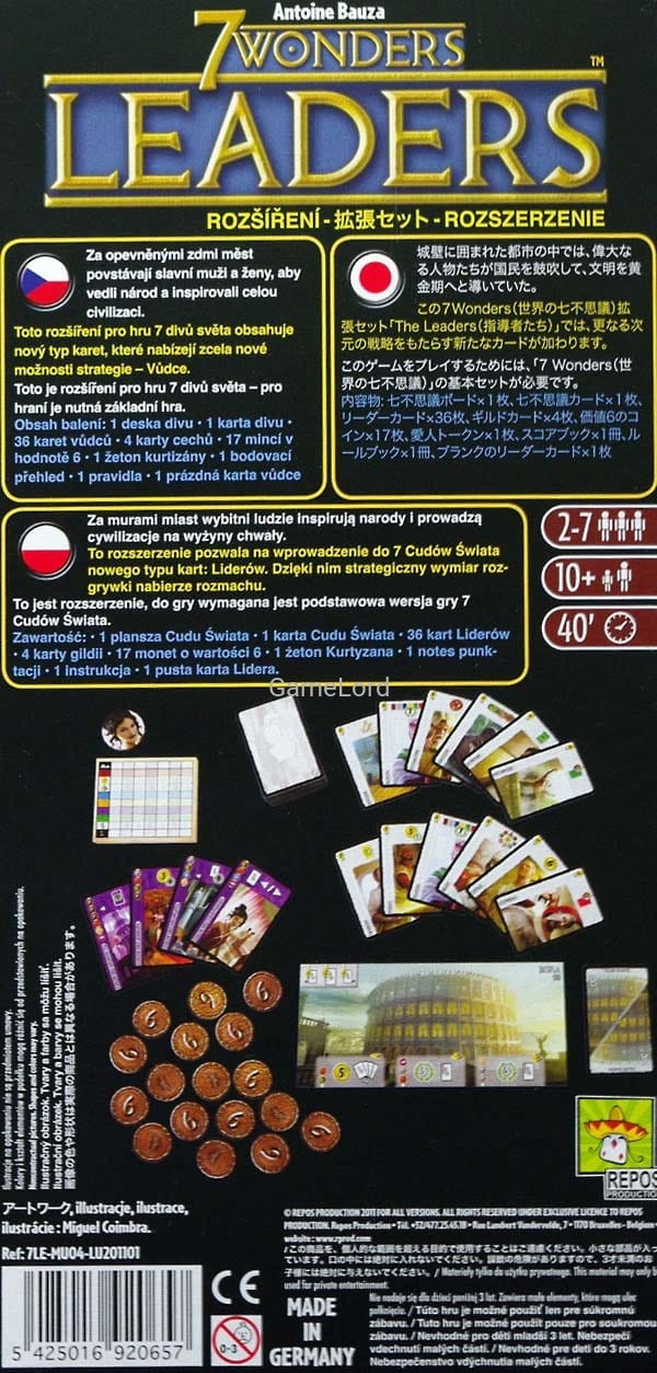 Uwaga! To nie jest samodzielna gra! Do rozgrywki wymagana jest podstawowa wersja gry: 7 Cudów Świata.