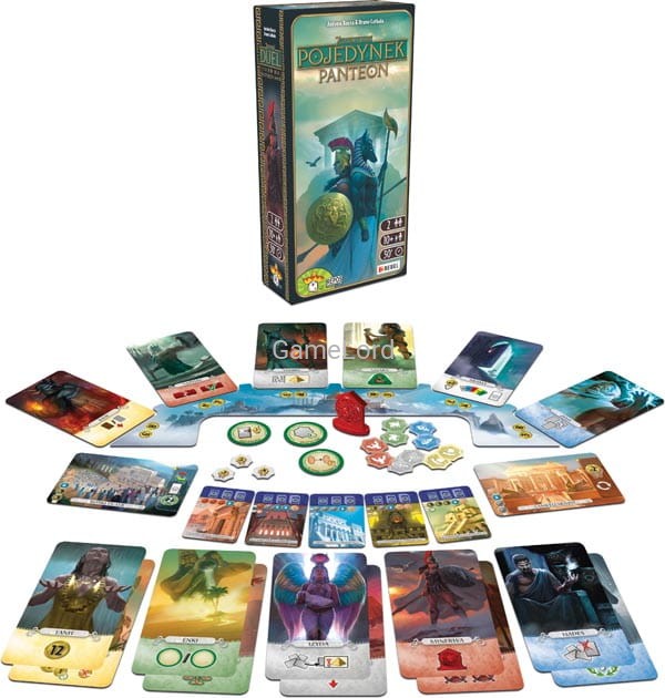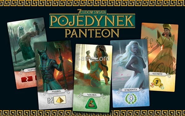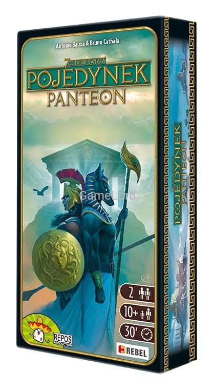 Dodatek Panteon wprowadza antycznych bogów do gry "7 Cudów Świata: Pojedynek". Teraz gracze mogą ubiegać się o przychylność bóstw z pięciu różnych kręgów kulturowych i skłonić je wszystkie do roztaczania swojej opieki nad ich miastem. Z pewnością pomoże w tym budowa bogatej świątyni ku czci wybranego patrona lub patronki albo poświęcenie im jednego z dwóch nowych Cudów Świata dostępnych w dodatku.
