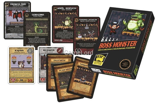 Boss Monster to samodzielna gra karciana, która rzuca graczy w wir niezwykłych przygód. Mają zmienić się w złoczyńców rodem z gier wideo i zbudować zabójcze podziemia. Gracze rywalizują starając się zwabić i zniszczyć jak największą liczbę poszukiwaczy przygód. Ale uwaga! Muszą stworzyć podziemia tyleż atrakcyjne, co śmiercionośne, inaczej słabowici bohaterowie gotowi ich pozabijać!