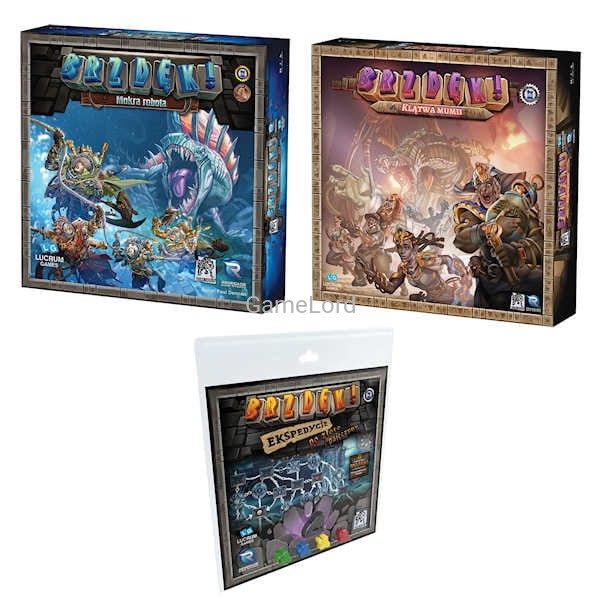 Brzdęk! - Ekspedycje po złoto i pajęczyny urozmaici przygody w świecie Brzdęku!. Dwustronna plansza pozwoli na wcielenie się w rolę górnika w kopalni złota oraz przeniesie Cię do krętych i pokrytych gęsta siecią lochów pajęczej królowej.