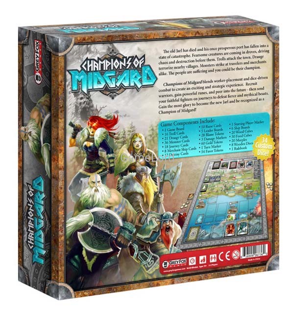 Champions of Midgard blends worker-placement and dice-driven combat to create an exciting and strategic experience. Recruit warriors, gain powerful runes, and peer into the future - then send your faithful fighters on journeys to defeat fierce and mythical beasts. Gain the most glory to become the new Jarl and be recognized as a Champion of Midgard!