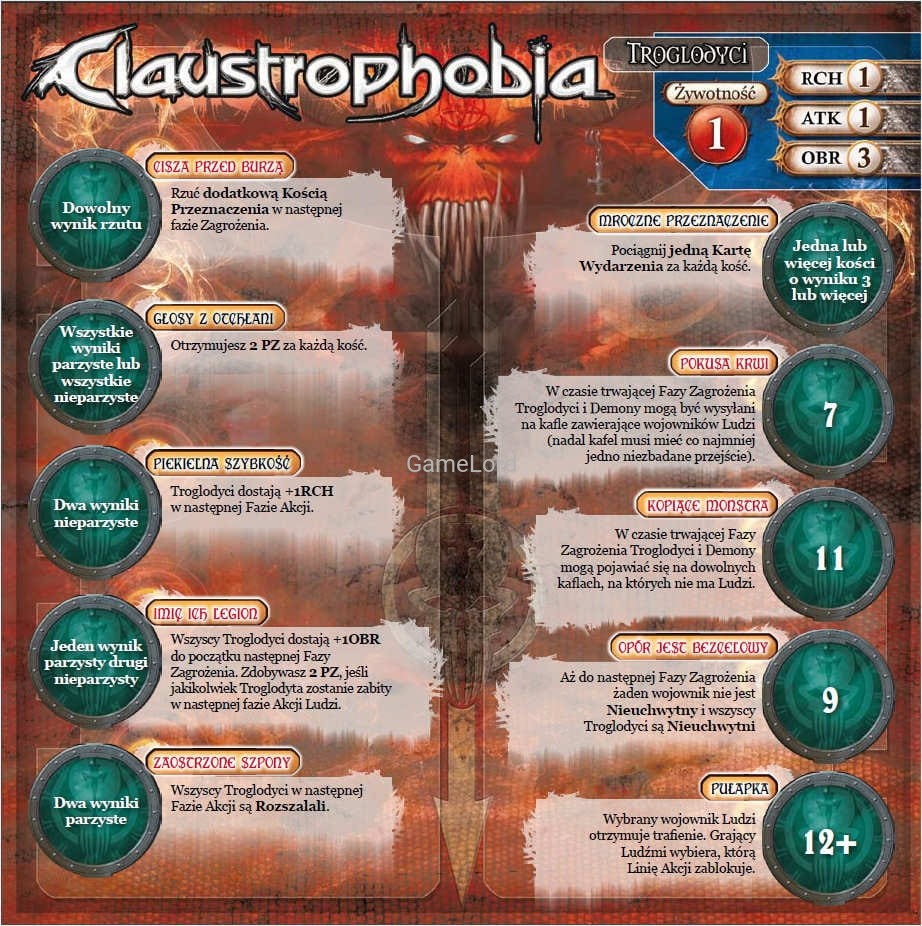 W Claustrophobii - grze obrazującej taktyczną walkę o przetrwanie, jeden z graczy będzie kontrolował grupę ludzi badających ciemne tunele piekielnego podziemia, próbujących wywalczyć sobie drogę przez legiony straszliwych Troglodytów. Drugi z nich zostanie władcą demonicznych sił, które pragną zniszczyć ludzkich awanturników.
