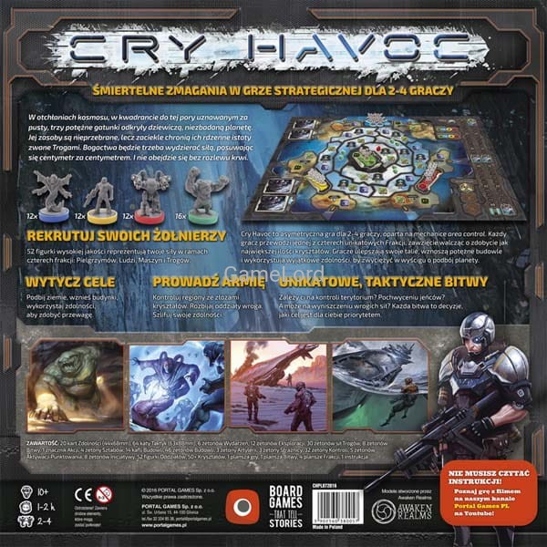 Cry Havoc to asymetryczna gra dla 2-4 graczy, oparta na mechanice kontrolowania terytorium (area control). Każdy gracz przewodzi jednej z czterech unikatowych Frakcji, zawzięcie walcząc o zdobycie jak największej liczby Kryształów. Ich wartość z pewnością przewyższy poniesione koszty. Aby zwyciężyć, gracze muszą ulepszać swoje talie, wznosić potężne budowle i wykorzystywać wyjątkowe Zdolności.