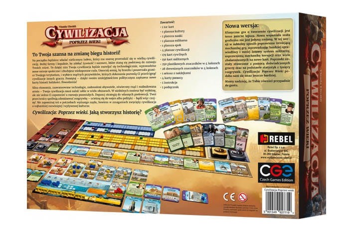 Cywilizacja: Poprzez Wieki to najnowsza edycja światowego hitu, gry która przebojem wdarła się do świata planszówek. Jest to gra planszowa odwołująca się mocno do legendarnej gry komputerowej Sid Meier's Civilization. Zarówno miłośnicy tego tytułu jak i po prostu zwolennicy dobrych, strategicznych gier planszowych - znajdą tutaj wszystko czego szukają w grze o rozwoju cywilizacji.