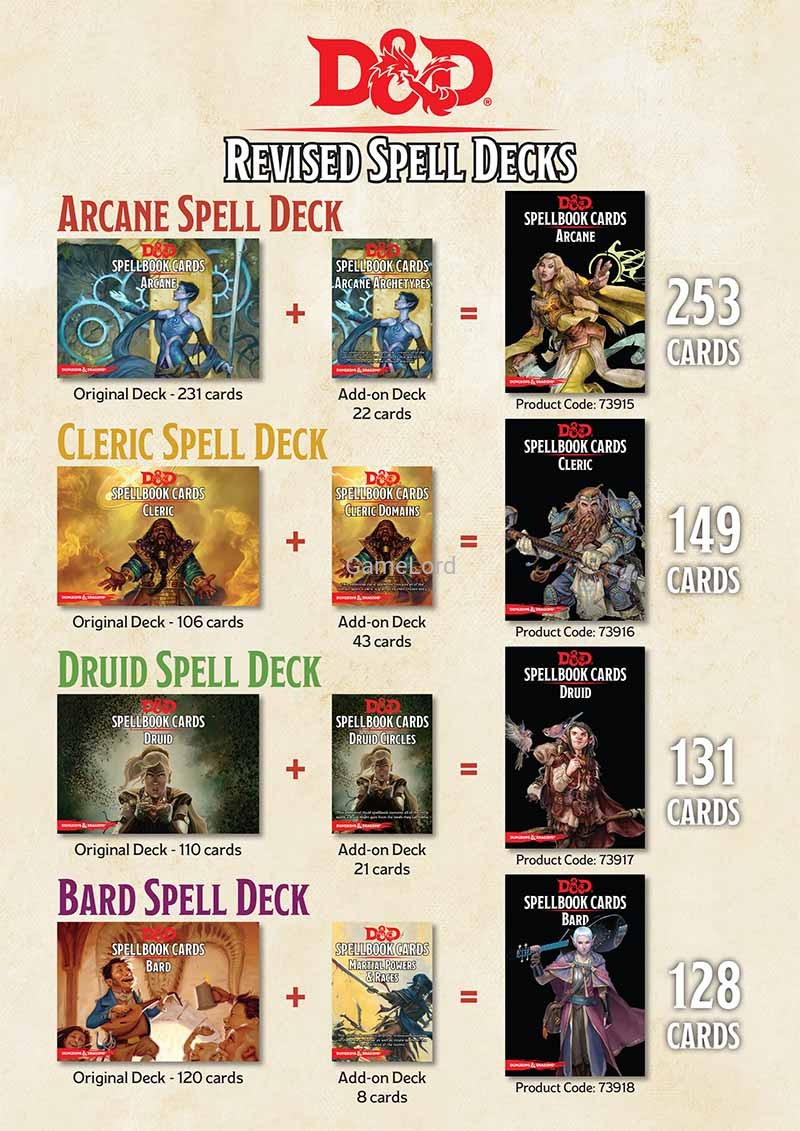 •Card backs prominently display spell level for easy sorting.
