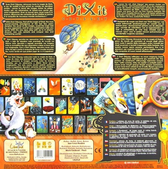 Z Dixit Odyssey odkryjesz na nowo magiczny świat Dixit – najczęściej nagradzanej gry ostatnich lat. Daj ponieść się wyobraźni, odkrywając tajemnice nowych kart. Tylko uważaj, żeby nie wpaść w pułapki zastawiane przez innych graczy! Dzięki nowym wariantom, w grze może brać udział aż do 12 osób. Razem wyruszcie na poszukiwanie nowych, zaczarowanych światów.