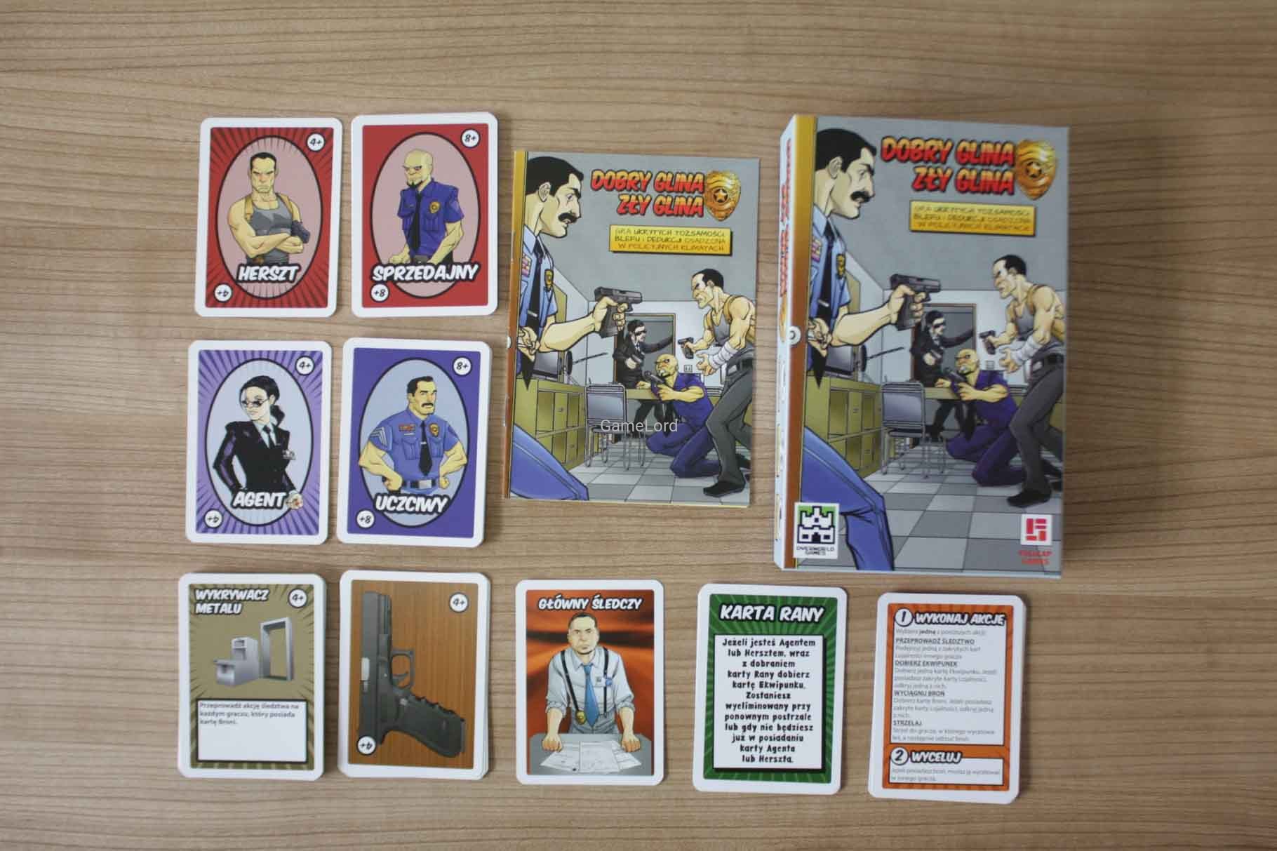 Dobry Glina, Zły Glina to dynamiczna gra ukrytych tożsamości, w której gracze wcielają się w uczciwych i skorumpowanych policjantów. Ich zadaniem jest odkryć, kto jest kim oraz wyeliminować szefa wrogiej grupy. Dużą regrywalność gwarantują karty przedmiotów, dzięki którym spotkanie twarzą w twarz z przeciwnikiem jest ekscytujące. Mnóstwo emocji, krótki czas rozgrywki i imprezowy charakter sprawiają, że Dobry Glina, Zły Glina to idealny pomysł na spotkanie w większej grupie graczy.