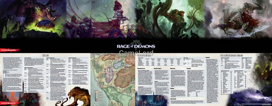 This screen is the perfect companion for those Dungeon Masters running the Out of the Abyss adventure, or any trek into the Underdark. The front includes ominous images of several demon lords while the back provides quick reference to maps, random encounter tables, and everything you need for an extended stay in the Underdark.