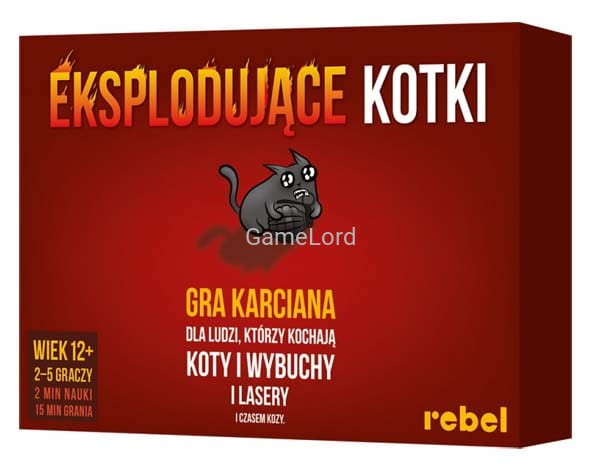 Eksplodujące Kotki to napędzana kociakami odmiana rosyjskiej ruletki. Gracze ciągną co turę po karcie, aż do momentu dobrania eksplodującego kota - wtedy nieszczęśnik wybucha i ginie, a gra się kończy. Ale! W talii są też karty, dzięki którym można odwrócić uwagę samobójczego kocięcia, uniknąć go, czy też zmusić przeciwnika do dobrania kilku kart na raz.