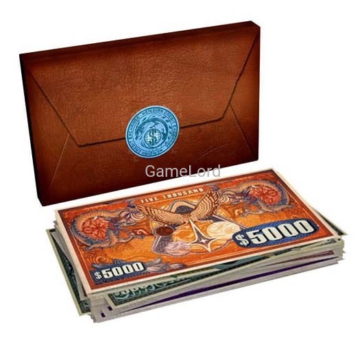 The Big Money Deluxe Accessory for Firefly upgrades the paper money from the game with 100 prop-sized banknotes (over 120K worth), for a real fistful of credits when the deal is done. Big Money also lives up to its name with a new denomination - a $5000 credit note, perfect for the biggest paydays!