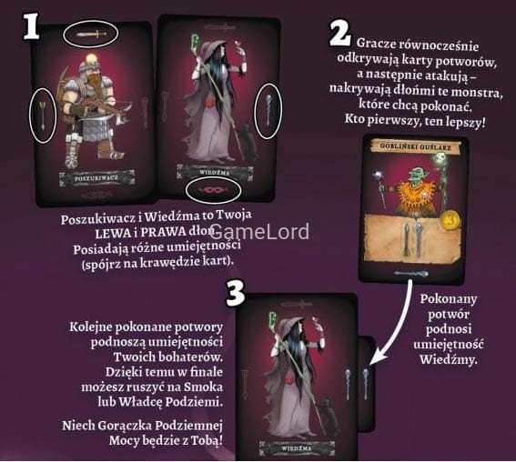 - Gracze równocześnie odkrywają karty potworów, a następnie atakują - nakrywają dłońmi te monstra, które chcą pokonać. Kto pierwszy, ten lepszy!