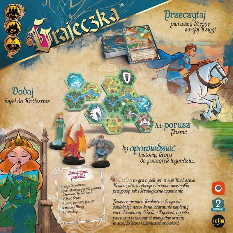 Witajcie w Grajeczce, w magicznym królestwie, przez które odważna Księżniczka, lojalny Książę i przerażający Smok podróżują w poszukiwaniu przygód. Potrzebują twojej pomocy, aby zbadać swoje królestwo! Pomóż im dotrzeć w najdalsze zakątki świata, by mogli spełnić swoje przeznaczenie, gdy ty będziesz tworzyć i opowiadać ich historię. Grajeczka to nie tylko gra, w którą grasz, to także baśń, którą opowiadasz z każdym kolejnym ruchem!