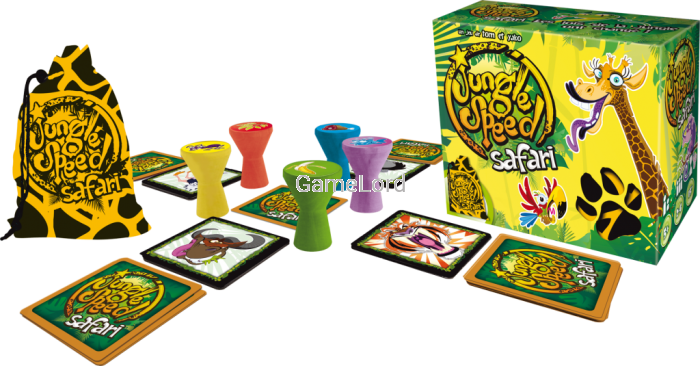 Jungle Speed Safari to nowa odsłona kultowej już gry Jungle Speed, wspaniałej zabawy dla całej rodziny. Tym razem zabiera nas ona w podróż po afrykańskiej dżungli i równinach Serengeti. Będziemy karmić i polować na afrykańskie zwierzęta, wypatrywać zmieniających kolor kameleonów, ryczeć jak tygrys, trąbić jak słoń i przede wszystkim dobrze się bawić w tej ćwiczącej refleks i spostrzegawczość grze! Naszym celem jest zdobycie jak najwiekszej ilości kart, ale łatwo nie będzie, bo tym razem w grze totemów do łapania jest aż 5! Czy będziesz w stanie odróżnić jedne zwierzęta od innych w tej ferii barw, jaką cechuje się afrykański kontynent?