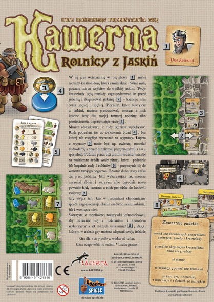 Caverna: The Cave Farmers to gra dla od 1 do 7 graczy, która trwa po 30 minut na każdego uczestnika rozgrywki. Jest to odświeżona wersja Agricoli, której dodano pełno nowych pomysłów, które od dłuższego czasu tkwiły w głowie Uwe Rosenberga. Dodano do niej m.in. jaskinię, nowe zwierzęta i wyprawy na misje. Ponadto gra posiada grywalny i w pełni satysfakcjonujący wariant solo, który pozwoli zapoznać się m.in. z 48 różnorodnymi taflami jaskini.