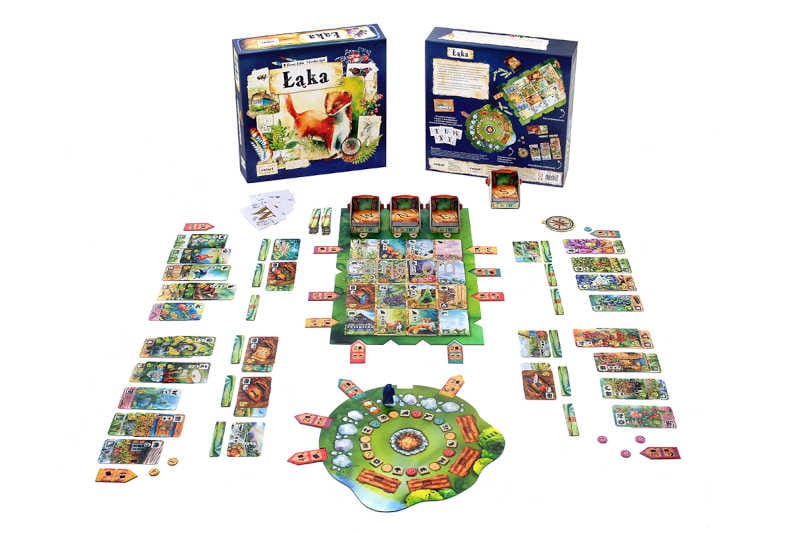 Łąka to gra planszowa, w której wcielamy się w wędrowców obserwujących naturę. Wyposażeni w mapę, spacerujemy po malowniczej okolicy, szukając inspiracji i uwieczniając zapierające dech w piersiach widoki. Kierujemy się pasją i ciekawością świata, ale też rywalizacją o tytuł najwprawniejszego obserwatora przyrody! Przypadnie on temu, kto zdobędzie najwięcej punktów z zaobserwowanych gatunków zwierząt i roślin, krajobrazów oraz pamiątek zebranych z wędrówki. Zmagania toczą się także przy ognisku, gdzie gracze prześcigają się w realizowaniu celów swoich wypraw.