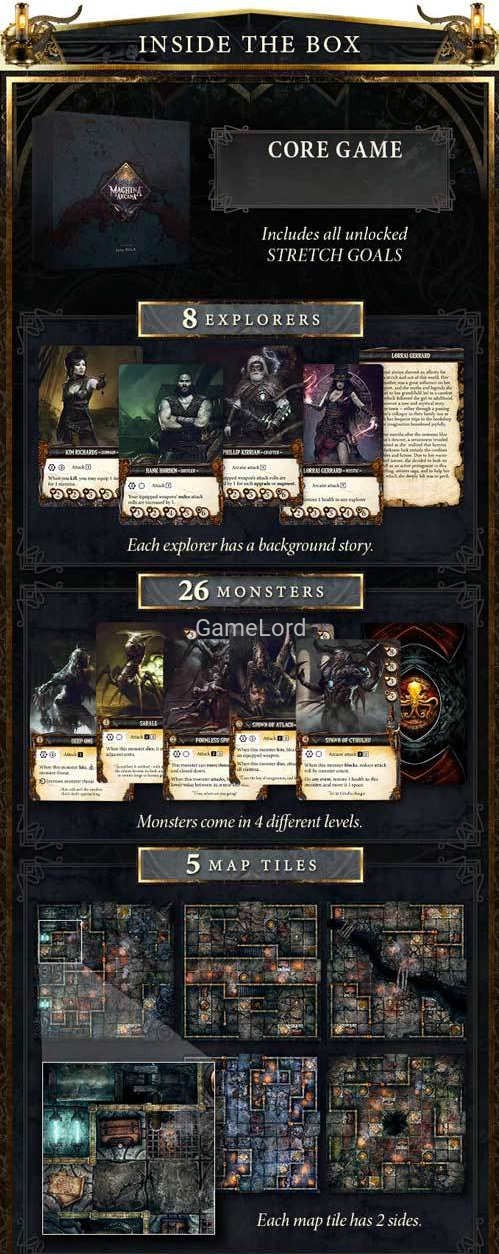 The main goal behind Machina Arcana is to provide players with a chilling game that can never be played the same way, mechanisms that enable varying strategies and approaches, and an extensive framework that combines everything smoothly. The game scales by default; there is no need for special conditions based on the player count. As the story progresses, so does your gear. But beware! If you are too slow, horror might very well prevail and devour you whole...