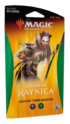 Each Theme Booster will be based on a two-color guild (Boros, Selesnya, Izzet, Dimir, or Golgari) found in the set. Designed for beginners.