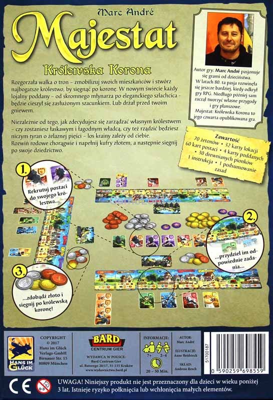 Majestat: Królewska korona to najnowsza gra ekonomiczna autorstwa Marca Andre - twórcy Splendoru, której światowa premiera miała miejsce na targach Essen 2017.