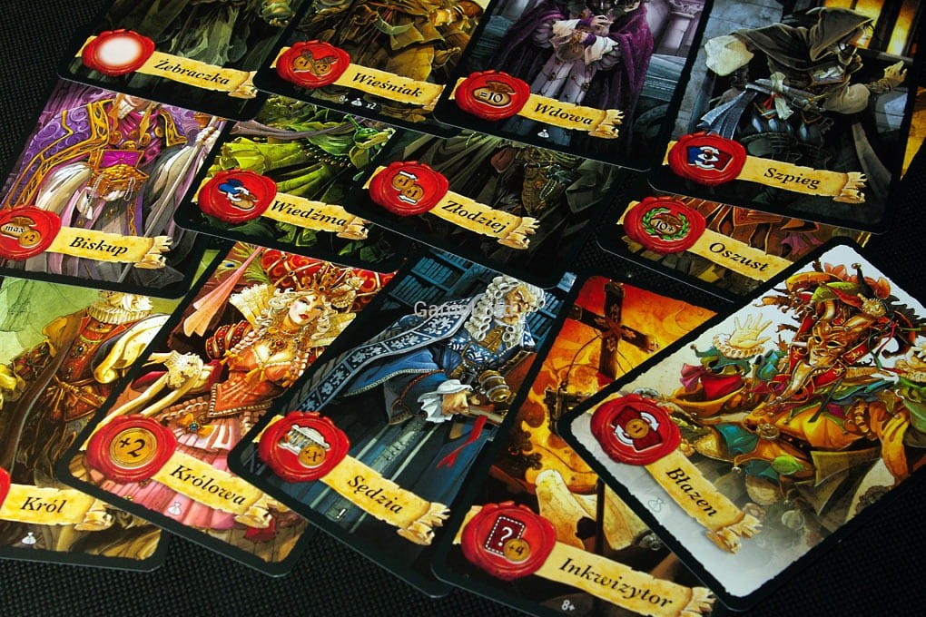 W grze występuje 12 różnych postaci: złodziej kradnący monety sąsiadom, wiedźma zamieniająca posiadane bogactwa z innym graczem, król i królowa podbierający monety, inkwizytor szukający osób podszywających się pod inne, głupiec zamieniający się rolami z innym graczem, biskup pobierający monety od najbogatszej postaci czy szpieg poglądający swoją i cudzą tożsamość.