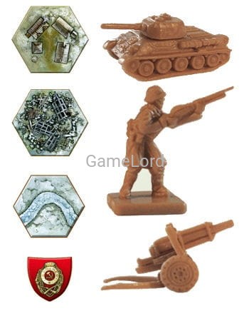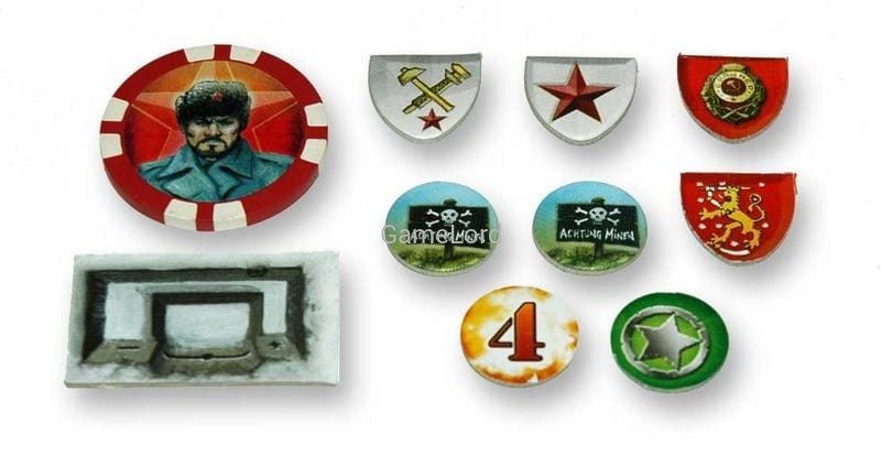 • 44 dwustronnych żetonów terenu, w tym ruiny, wąwozy, zamarznięte rzeki, bagna i pokryte śniegiem lasy