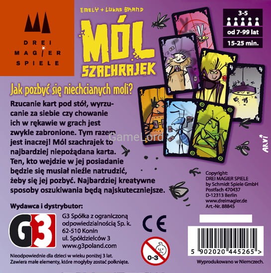 Rzucanie kart pod stół, wyrzucanie za siebie czy chowanie ich w rękawie w grach jest zwykle zabronione. Tym razem jest inaczej! Mól szachrajek to najbardziej niepożądana karta. Ten, kto wejdzie w jej posiadanie będzie się musiał nieźle natrudzić, żeby się jej pozbyć. Najbardziej kreatywne sposoby oszukiwania będą najskuteczniejsze.