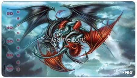 Gumowa mata do gier karcianych z zaokrąglonymi rogami i nadrukiem o wymiarach 606x443mm.