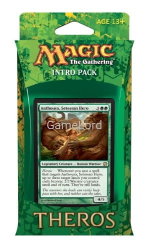 Zielony zestaw startowy. Theros to dodatek do kolekcjonerskiej gry karcianej Magic: the Gathering. Rozpoczyna on blok trzech dodatków pod tą samą nazwą. Pozostałe części bloku to: Born of the Gods oraz Journey Into Nyx.