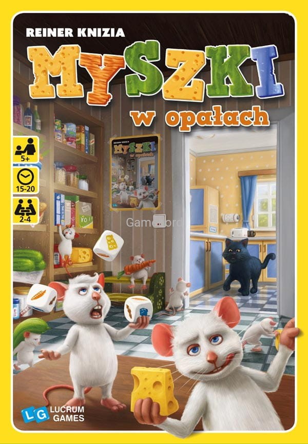 Nowa gra dla dzieci autora Pędzących żółwi! Harce w spiżarce czyli zabawa w kotka i myszki dla małych i trochę większych graczy Gra kooperacyjna z dwoma wariantami. Idealna gra dla dzieciaków, Które mają kłopot z przegrywaniem Zawiera wariant dla całkiem małych dzieci (5 lat) oraz nieco trudniejszą łamigłówkę dla dzieci lat 7+. Gracze wcielają się w rolę mysiej rodzinki, która wynosi ze spiżarni państwa Łasuchów kawałki sera, warzywa i ryby. Kłopot polega w tym, że domu pilnuje kot Łoskot! Każdy błąd graczy oznacza szmer, po którym kot jest coraz bliżej spiżarni. Gracze wygrywają wspólnie gdy opróżnią całą spiżarnię (dwie strony planszy, łatwiejsza i trudniejsza). Gracze przegrywają wspólnie gdy kot dostanie się do spiżarni zanim zostanie ona opróżniona. Jednak autor pokazuje jak gracze byli blisko sukcesu i zachęca do zagrania ponownie.