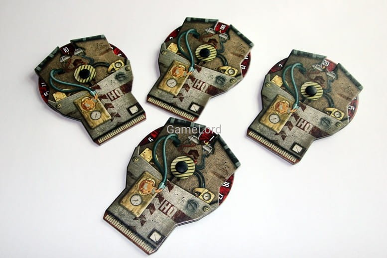 Znaczniki obrażeń: do Neuroshimy Hex wracają znane z pierwszej edycji znaczniki obrażeń sztabów. W zestawie znajdują się cztery znaczniki. Dla rozgrywek na większą ilość graczy na planszy pozostaje licznik obrażeń tak, jak w poprzedniej edycji.