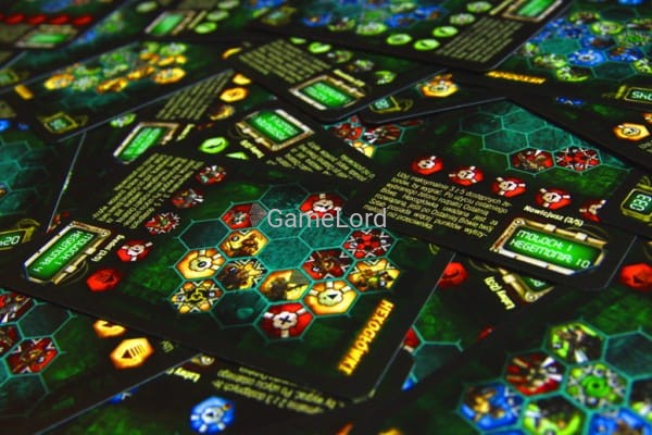 Talia Hexogłówek: do Neuroshimy Hex dodaliśmy 55 kart z hexogłówkami zaprojektowanymi przez Michała Herdę, który od wielu lat zajmuje się projektowaniem podobnych łamigłówek. Dzięki tym 55 kartom możecie pobawić się w Neuroshimę nawet, gdy nie ma w okolicy przeciwnika!
