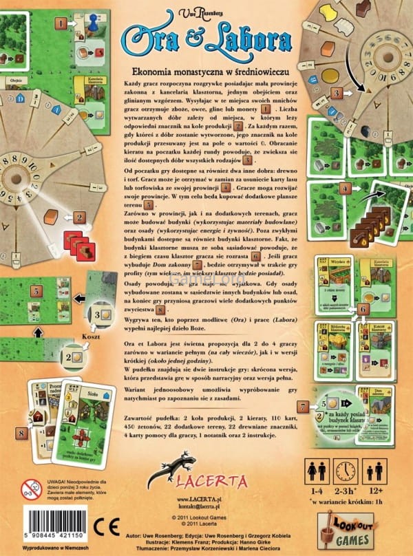 Gracze wcielają się w role opatów i wysyłają podległych sobie mnichów (przeora i dwóch braci zakonnych) do budynków, w których wytwarzane są różnego rodzaju dobra. Ilość wytwarzanych dóbr wskazuje kierat na kole produkcji.