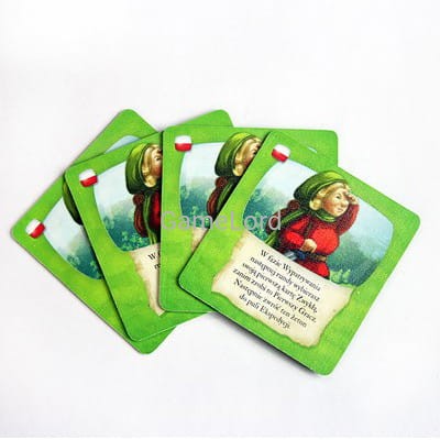 Zestaw 4 dodatkowych żetonów na grubej tekturze.