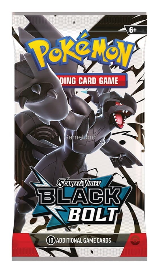Pokémon TCG: Scarlet & Violet - Black Bolt - Booster jest fabrycznie zapakowany i zawiera 10 losowych kart.