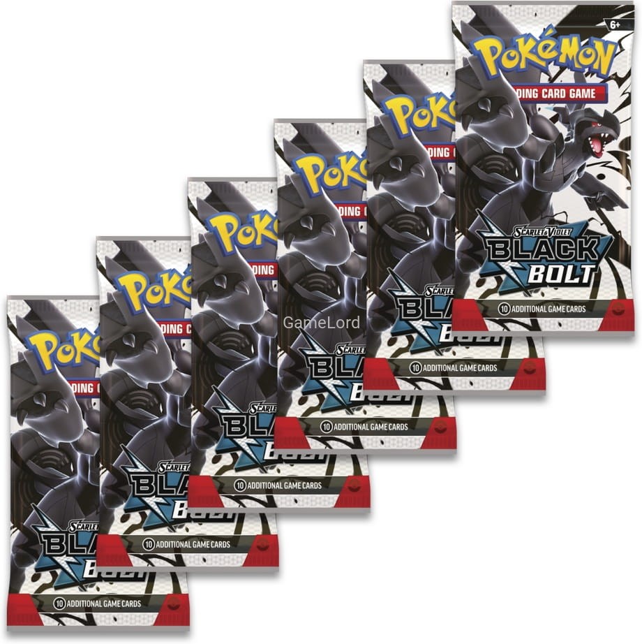 Pokémon TCG: Scarlet & Violet - Black Bolt - Booster Bundle - Zekrom zawiera SZEŚĆ Pokémon TCG: Scarlet & Violet - White Flare - Booster plus SZEŚĆ Pokémon TCG: Scarlet & Violet - Black Bolt - Booster A każdy fabrycznie zapakowany Booster zawiera 10 losowych kart.