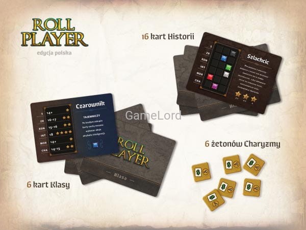 Wiemy już, że Roll Player to gra o tworzeniu postaci. Zabawę zaczniecie więc od wybrania jednej z klasycznych dla fantasy ras (Elf, Krasnolud, Niziołek i Człowiek). Następnie wylosujecie profesję Waszego bohatera (kartę Klasy), a także jej unikatową historię oraz charakter. Wszystkie te elementy będą miały znaczenie w dalszej rozgrywce, a liczba ich kombinacji wpływa wprost na wysoką regrywalność gry.