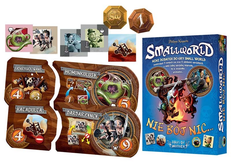 Dzięki dodatkowi Small World: Nie bój nic!, wasze rozgrywki uatrakcyjni pięć nowych ras: barbarzyńcy, homunkulusy, wróżki, pigmeje i leprechauny.