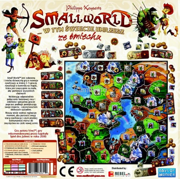 Small World, stworzony przez Philippe Keyaerts jako następca jego szeroko nagradzanej poprzedniej gry Vinci, to świat zamieszkany przez różnorodne rasy - krasnoludy, czarodziejów, amazonki, gigantów, orki a nawet ludzi. Każda z tych nacji posyła do walki swoje armie - wszystko, aby zdobyć chociaż odrobinę nowego terytorium i wymazać inne plemiona z powierzchni ziemi.