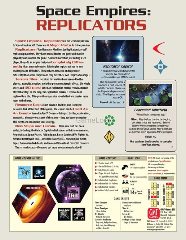 Replicators is the second expansion to Space Empires: 4X. There are 4 major parts to this expansion: