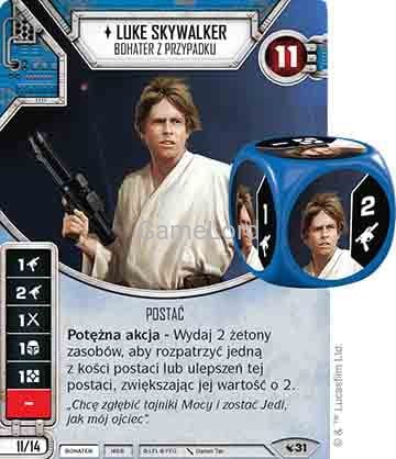 Starter Luke Skywalker wprowadza do gry nowe zdolności związane z Mocą. Skupienie Mocą nie zadaje wprawdzie obrażeń, ale stanowi świetne wsparcie dla postaci. Dzięki dodatkowym osłonom, zasobom i manipulowaniem kośćmi pomaga utrzymać kontrolę nad rozgrywką.