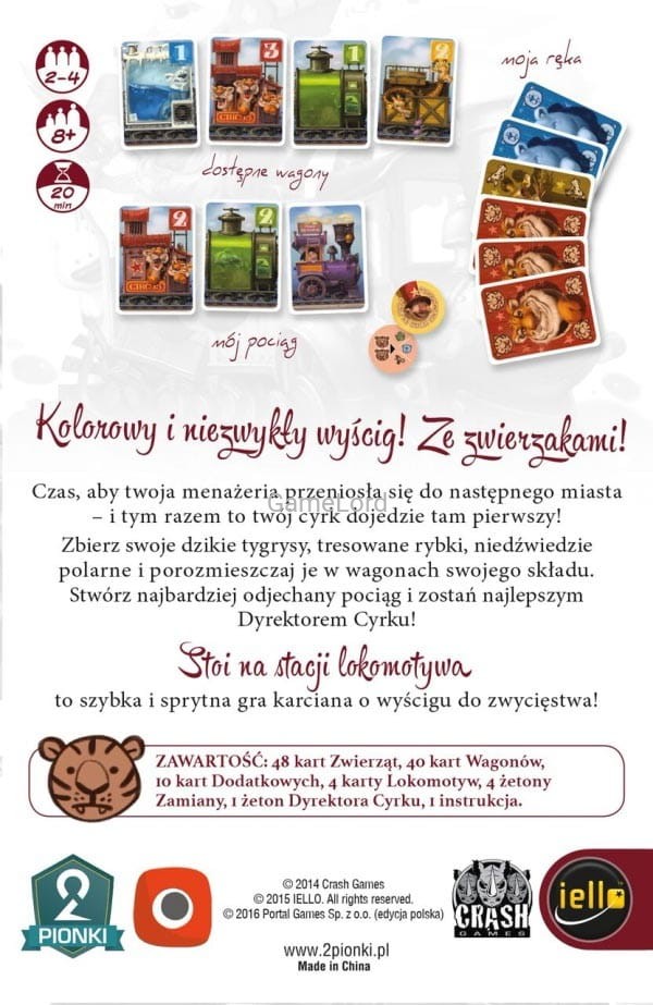 Stoi na Stacji Lokomotywa to gra dla całej rodziny, w której będziecie - podobnie jak w pięknym wierszu Jana Brzechwy - doczepiać do swojej lokomotywy kolejne wagony, w tym wypadku pełne lwów, żyraf, niedźwiedzi i innych zwierzaków!