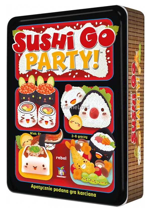 Sushi go party! to samodzielna wersja popularnej, imprezowej karcianki, oparta o znaną z 7 cudów świata mechanikę draftu. Gracze dobierają na rękę tyle samo kart, po czym jedną z nich wybierają, a resztę przekazują dalej. W ten sposób konstruujemy jak najbardziej opłacalne zestawy, kontrolując jednocześnie poczynania przeciwników.