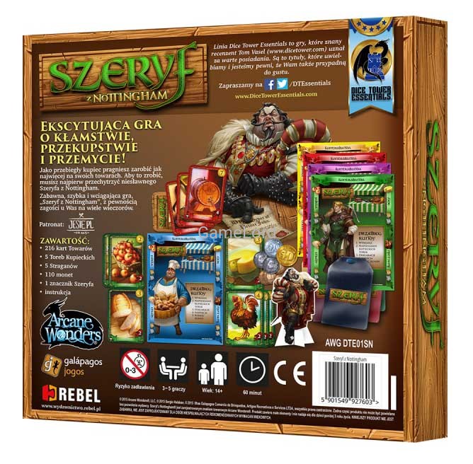 Chciwość i żądza bogactwa księcia Jana sięgnęły zenitu! Dla zwykłego, uczciwie płacącego podatki kupca godne życie stało się niemożliwe. Oto Szeryf z Nottingham sprawdza wszystkich wchodzących do miasta, czy aby nie wnoszą w obręb jego murów zakazanych towarów. Na szczęście Ty znasz Szeryfa lepiej niż książę. Ten nieprzyjemny, chciwy typ może sprawiać onieśmielające wrażenie, gdy stoi w bramie miasta, ale - bądźmy szczerzy - nawet on spojrzy w drugą stronę, gdy otrzyma sowitą łapówkę.
