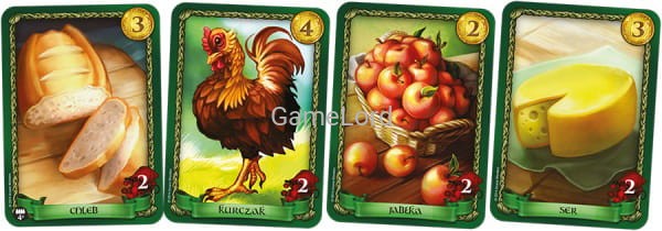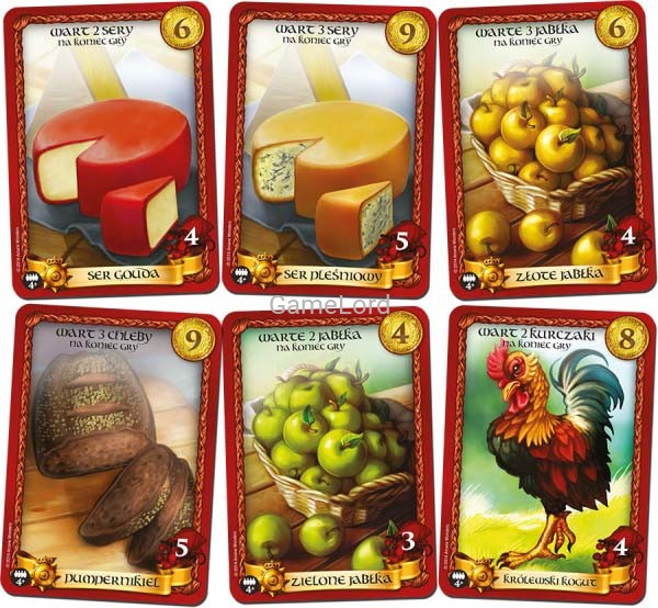 • 216 kart Towarów (144 karty Legalnych Towarów (zielone), 60 kart Kontrabandy (czerwone), 12 kart Dóbr Królewskich (czerwone ze złotą wstęgą i pieczęcią Szeryfa u dołu) );