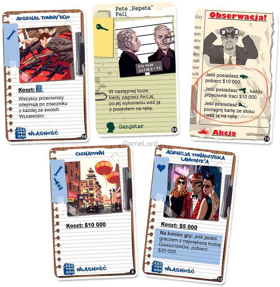 • 80 kart – 30 kart Akcji, 25 kart Gangsterów, 25 kart Własności