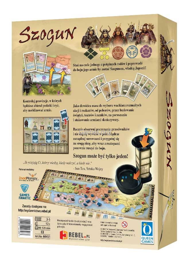 Mechanika Szoguna nawiązuje do rewelacyjnej gry Wallenstein. Od dnia swej premiery podbił serca miłośników strategii na całym świecie, zdobywając w serwisie Board Game Geek średnią ocen powyżej 8 (na 10 możliwych).