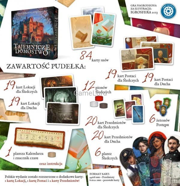 Tajemnicze Domostwo to towarzyska gra planszowa dla 2-7 graczy. Jeden z nich wciela się w postać ducha. Jego zadaniem jest sprawić, by pozostali gracze odgadli przedmioty, miejsca i osoby powiązane ze zbrodnią sprzed lat. Posłużą im do tego przepiękna talia kart, siła skojarzeń i potęga wyobraźni!