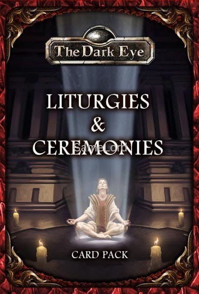 Blessed One characters in The Dark Eye learn different liturgical chants and ceremonies to invoke the powers of their gods. These game reference cards present a handy, colorful reference for each possible liturgical chant and ceremony that they can refer to easily and consistently during play! No need to flip through the Core Rules to find the specific data - it's right on the Liturgies & Ceremonies card!