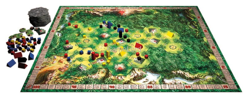 Plansza to tajemniczy, nieznany obszar dżungli. W każdej turze gracze ciągną żetony terenu i kładą je na planszę. Żetony te moga być dziką dżunglą, świątyniami, wulkanami czy ukrytymi skarbcami. Z czasem, jak plansza zaczyna nabierać kształtu, widać coraz więcej świątyń i skarbców, którymi wartoby się zainteresować...