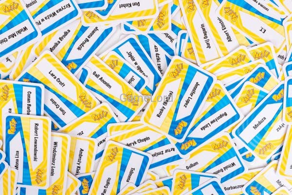 - Gra zawiera 220 kart, a na każdej 2 słowa gwarantują niekończącą się zabawę (przy każdej grze używamy tylko około 40 słów (zależy od liczby graczy);